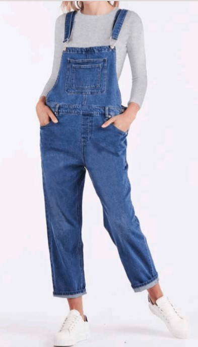 The Simone Dungaree is versatile, the ultimate timeless piece.  This vintage inspired style has trendy distressed details. The dungaree can be layered over a cropped rib tee for hot summer days or light knitwear in cooler months.
