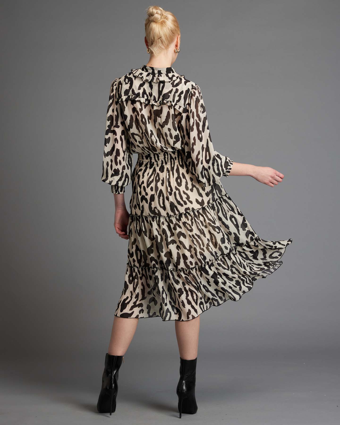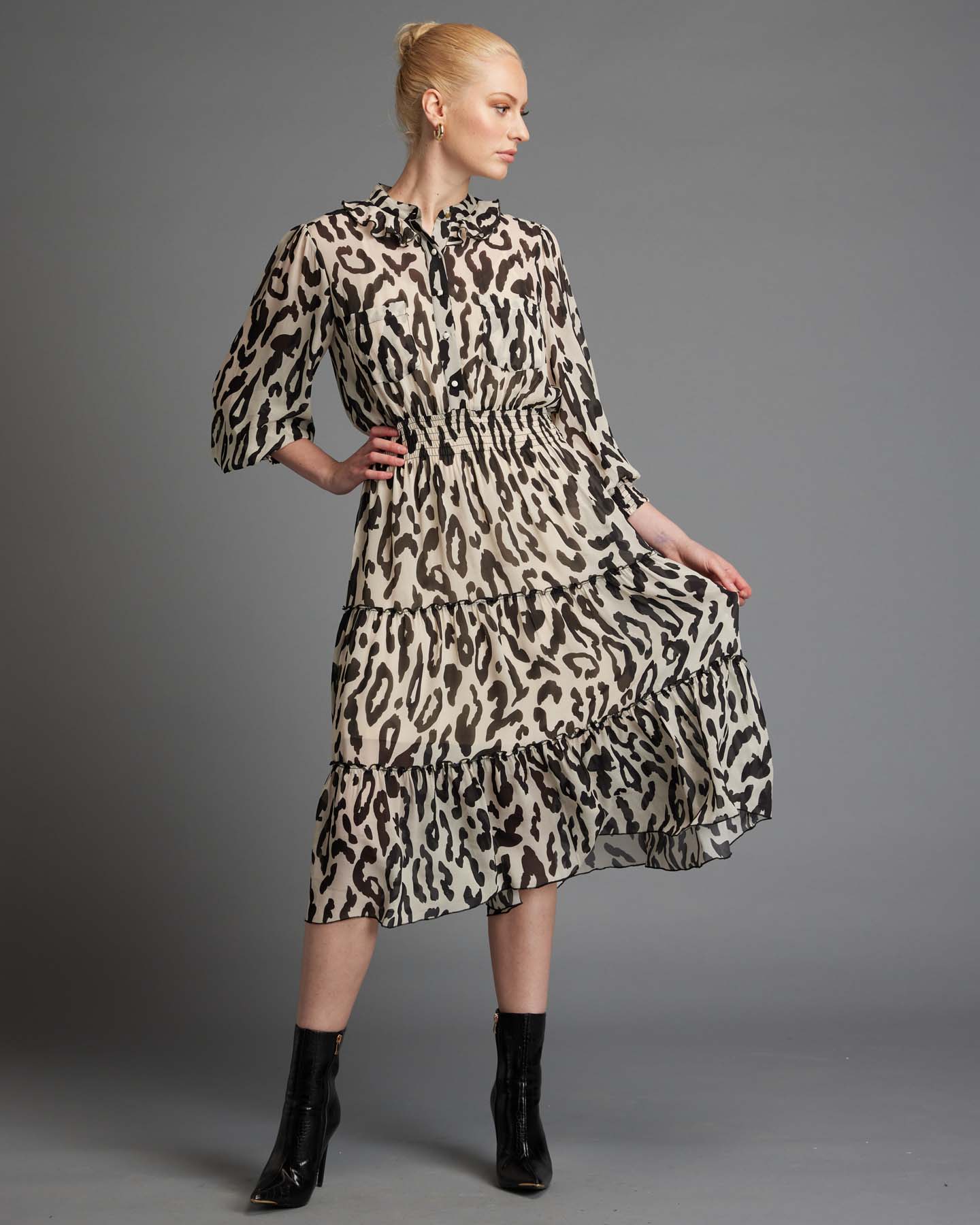 The Dreaming Frill Midi Dress is a work of art that seamlessly blends dark gothic vibes with an air of sophistication and refinement. The elegant mandarin collar adds a touch of regal grace, while the long sleeve design exudes a sense of timeless elegance that is both enchanting and captivating. The dark and gothic animal print is the crowning jewel of this garment, infusing it with a sense of edgy and daring fashion that is sure to turn heads. Embellished with subtle frills, this dress showcases impeccable craftsmanship that is both intricate and beautiful.