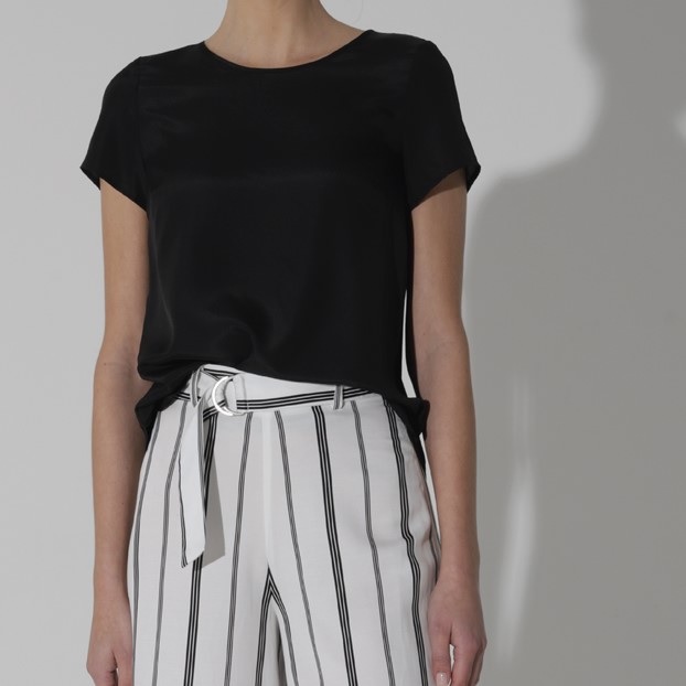 Doubling up as your newest office-to-out styling tool, this mixed woven and jersey top has a round neck, short sleeves with binding on the shoulders for that extra detail. Available in Black, White and Blood Red.