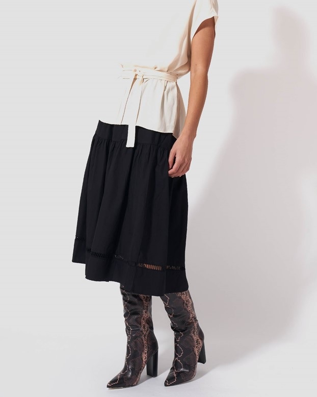 This floaty skirt is crafted in crisp cotton poplin with an A-line silhouette and cut below the knee. Designed to sit on the waist with an elasticated back for endless comfort.