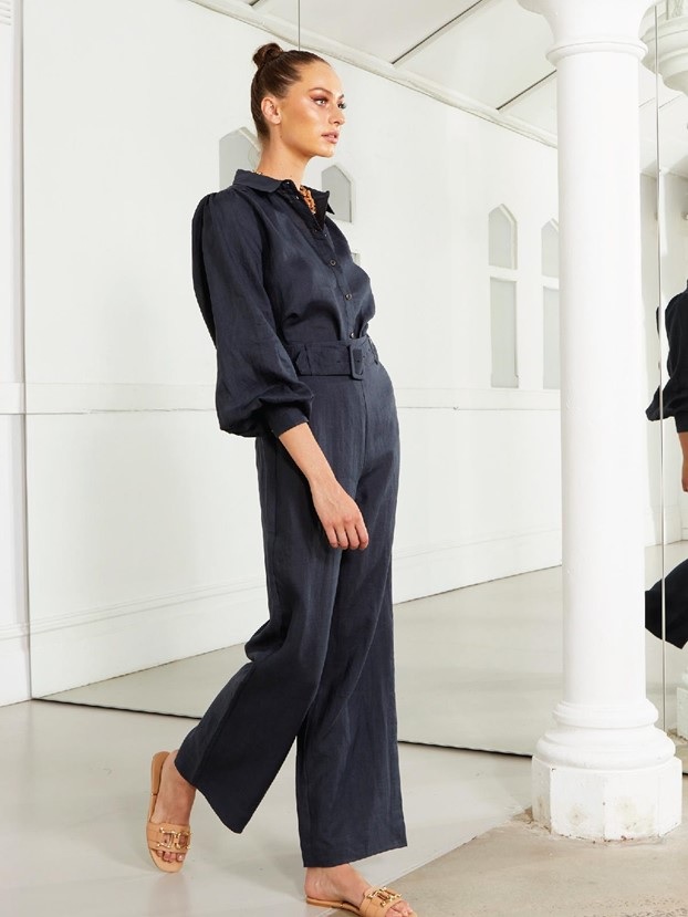 Creating a high waisted fit, descending effortlessly through a full, wide leg shape. Made from a soft linen, the pants feature an elasticated back waistband and fly front closure.